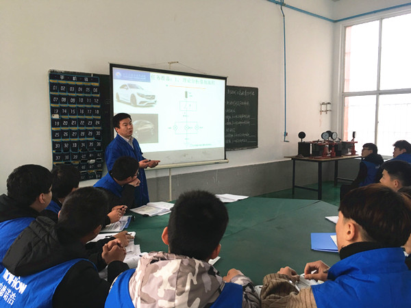 本次觀摩課,曹老師以師生一起大聲朗讀校訓(xùn)引導(dǎo)學(xué)生進(jìn)入學(xué)習(xí)狀態(tài),整個(gè)教學(xué)過(guò)程模擬汽車4S店真實(shí)工作場(chǎng)景,以企業(yè)一線任務(wù)為引導(dǎo),采用基于中德諾浩KTS教學(xué)平臺(tái)的混合式教學(xué)模式,利用精美的圖片和視頻將抽象的問(wèn)題形象化,復(fù)雜問(wèn)題簡(jiǎn)單化,教學(xué)組織嚴(yán)謹(jǐn),教學(xué)思路清晰,聲音中氣十足,板書(shū)端正秀麗。給大家呈現(xiàn)了一堂精彩的教學(xué)觀摩課,讓同學(xué)們深受啟迪的同時(shí)也深深感染了在座的每一位老師。